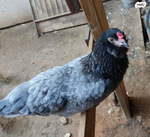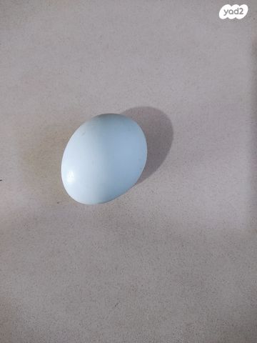 תרנגולת איסטר אגר, מעורבת עם אראוקנה, מטילה ביצים בצבע כחול ירוק. בגיל 7 חודשים.