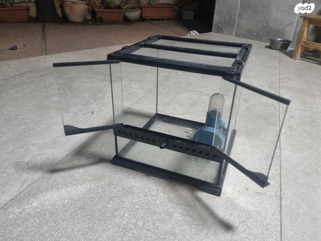 כלוב זכוכית למכרסמים עם רשת עליונה כולל מתקן לאוכל ושתייה - גמיש