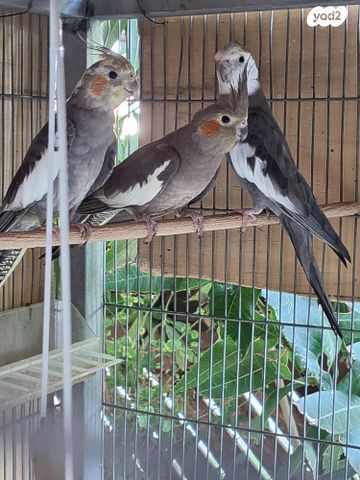 קוקטילים בצבעים לבן צהוב ואפור 13 יח' 6 נקבות ו7 זכרים 7 כלובי הטלה מכירה כוללת אפשרות עם הכלוב 1300 ש"ח כל הקוקוטילים כלוב 300 ש"ח