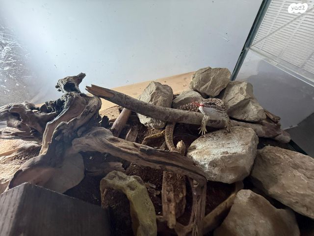 זוג חרדונים (זכר ונקבה) ולטאת כוח זנב קוצני למכירה יחד עם כל האביזרים.