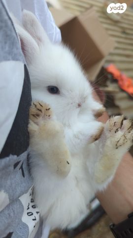 גורי ארנבים ננסיים עם עניים כחולות ארנבים שמוטי אוזניים קטנים, לבנים עם עניים כחולות ידידותיים ורגילים לילדים, חמודים, נעימים, חברותיים מעולים כמתנה לילדים בנימינה, אריאל