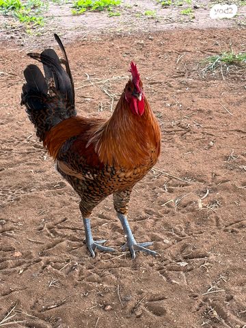 תרנגול פיומי זכר בן חצי שנה חזק וגדול, האכלת יד לא מחוסן, תרנגול חופש