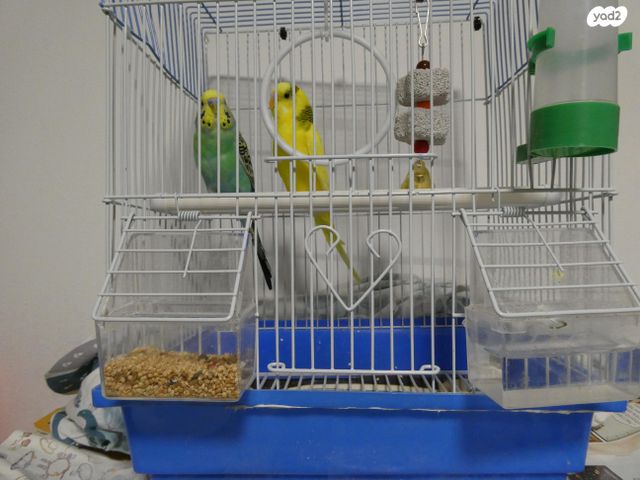 שני תוכונים יפים וחמודים, עם כלוב מאובזר, שוקת מים, פעמון עם אבן גיר, עבור הכל 160 גמיש