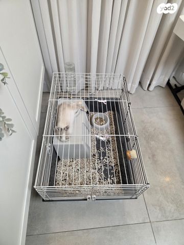 ארנבת הולנדית עם עיניים כחולות מתוקה ורגועה מעולה לילדים, פלוס כלוב עם אביזרים איסוף מיבנה. יש אפשרות לקנות בנפרד את הכלוב/ארנבת
