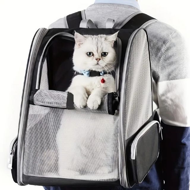 תיק גב מהמם וייחודי חדש באריזה לחיות מחמד, מלא פתחים וקירות רשת מאווררים, כיסי אחסון וכתפיות נוחות. כרית נוחה ורכה לישיבה של חיית המחמד. מידות 42×32×38
