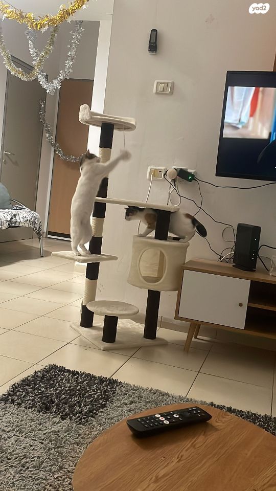 מתקן מהמם ומפנק לחתולים חדש באריזה עם בית, פלטפורמות גירוד ורביצה וצעצוע. מידות 112*40*40 ס"מ, קיים בצבע: חום לבן.
