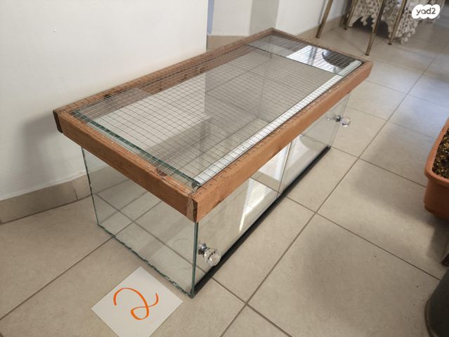 טרריום זכוכית גדול. גודל זכוכית נטו: אורך 72, רוחב 30, גובה 31 ס"מ. שתי דלתות זכוכית ומכסה רשת מתכת שניתן להרמה. 400 ש"ח. (מנתניה)