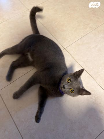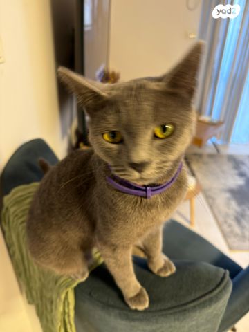 למסירה חתולה אפורה מעוקרת ומחוסנת בצער לרגל מעבר למדינה אחרת. חברותית ושקטה