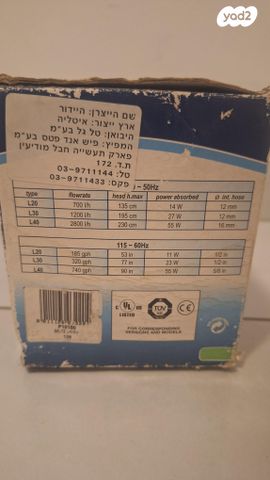 משאבת העלאה לאקווריומים ובריכות דגים עוצמתית 2800ליטר לשעה 55 וואט חדשה בקופסה עם האביזרים לא הייתה במים חברת hydor