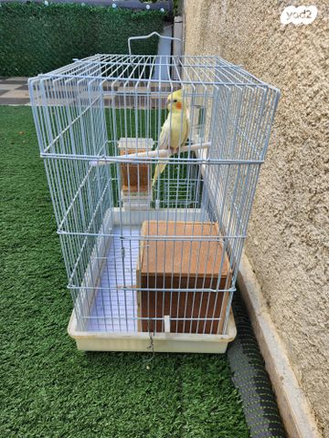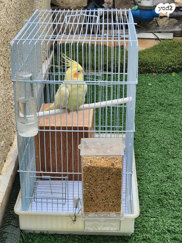 תוכי קוקטייל קומפלט עם כלוב ואביזרים: מקל, נדנדה, מיכל שתיה, מתקן אוכל משוכלל ובית הטלה מותאם עם תופסנים לתליה מבחוץ (יש חלון צד מתאים).