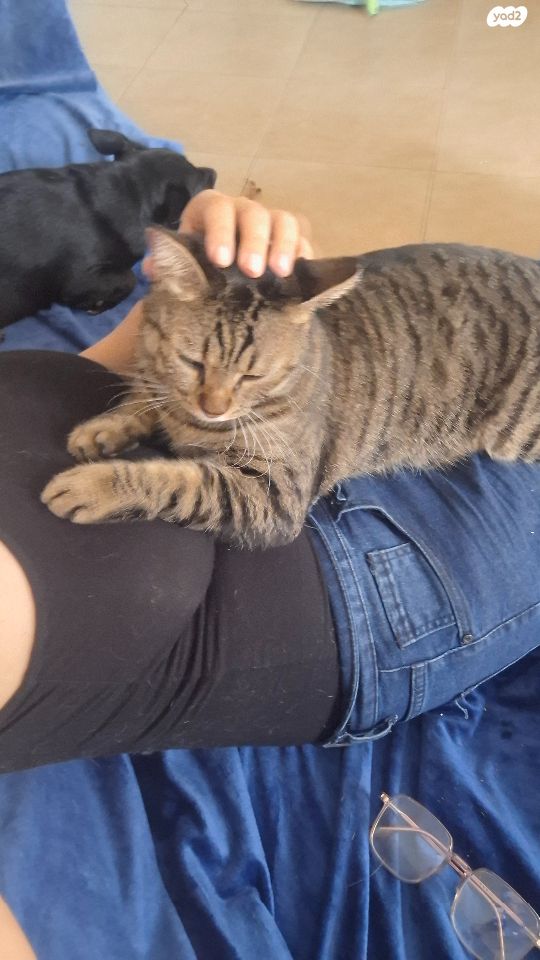 זוג חתולים חברים אוהבים לשחק ביחד, מתכרבלים אוהבים לשבת על הרגליים