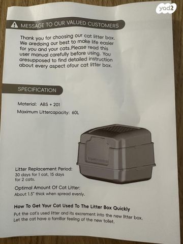 ארגז צרכים איכותי לחתולים חדש לגמרי, 60 ליטר, עם תחתית מנירוסטה.