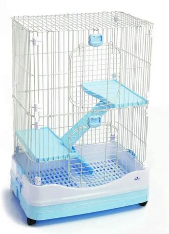 כלוב יחיד מסוגו בארץ ,מרשים ביופיו ואיכותי מאוד במידות 97*48*67 ס"מ, עשוי רשת ברזל עבה מצופה צבע. בעל שלוש קומות, שני סולמות, שתי דלתות לפתיחה ומנעול חכם, הכלוב מגיע עם גלגלים להקלה בשינוע ומגירה נשלפת בתחתית להקלה בניקוי. כל חלקי הפנים מפלסטיק ולא יחלידו! מתאים למכרסמים גדולים וחמוסים. הכלוב קיים בצבעים: ורוד וכחול.