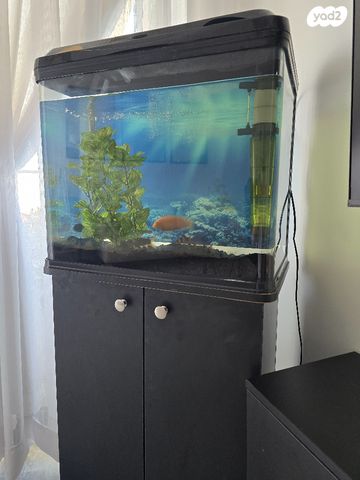 אקווריום עם פילטר וחצץ שחור,עציץ עלים ו 6 דגים שווים להם קרוב ל-400 שח דגם מהממים ציקלידון, מידות של אקווריום, הכוללות גובה, עומק ורוחב. אורטוס בטויה ליצן גובה כולל ארונית: 126 עומק: 35.5 רוחב: 60