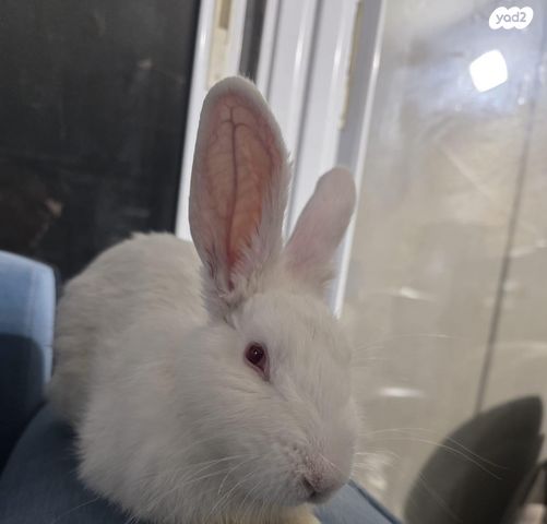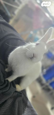ארנבת חמודה יפה לבנה רגילה לידים לילדים וללטיפות נמכרת אם כלוב גדול 2 מתקני אוכל ומתקן שתיה +רצועה קטנה מותאמת לארנבים