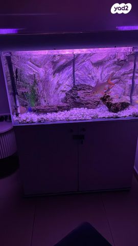 אקווריום עם שידה והמון ציוד יקר לתחזוק האקווריום והדגים.