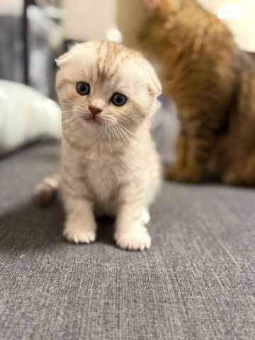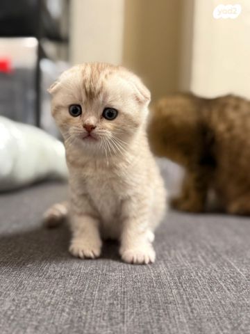 גור סקוטי פולד גזעי מתוק, משחק, ידידותי ואוהב ידיים.