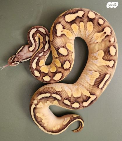 Butter Calico Pastel Yellow belly פיתון מתכדר נקבה בת שנה אוכלת חי וקפוא, לא נושכת בכלל, מתאימה לילדים ומתחילים. לרציניים בלבד, לא מעוניין בהחלפות.