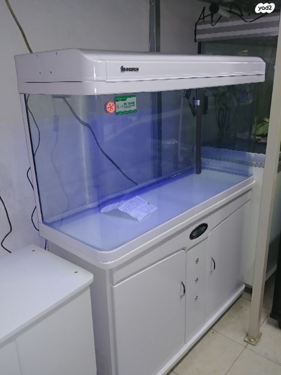 אקווריום מטר לבן חדש מהאריזה של חברת מיני יאנג עם פינות מעוגלות, פילטר מובנה במכסה מתכת, תאורת לד וארונית מותאמת. המידות: 104 על 37 בגובה 60סמ. אפשר גם בשבת. אפשרות להובלה