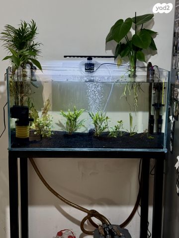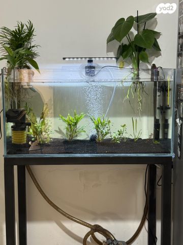 אקווריום אורך 80 עומק 40 גובהה 40 כולל סטנד ברזל עם כל הציוד תאורה, פילטר, מד חום , טרמוסטט, חצץ , וצמחים חיים