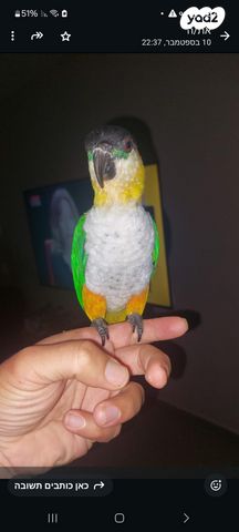 קאיק ראש שחור האכלת יד ברמה גבוהה מדהים ביופיו עם טבעת. החתמה מושלמת.