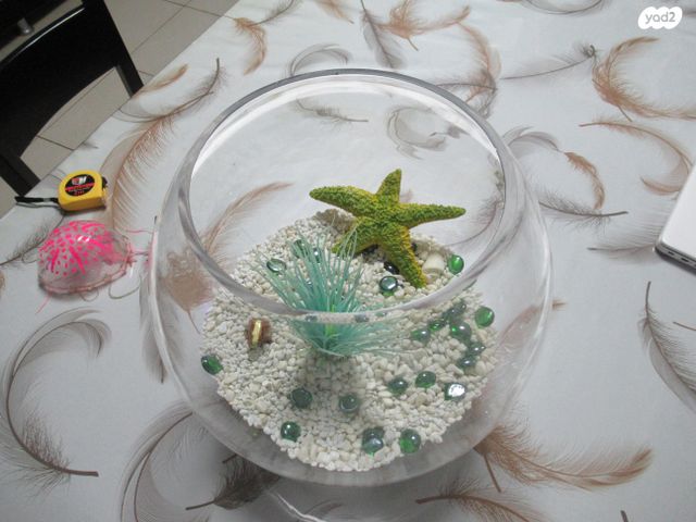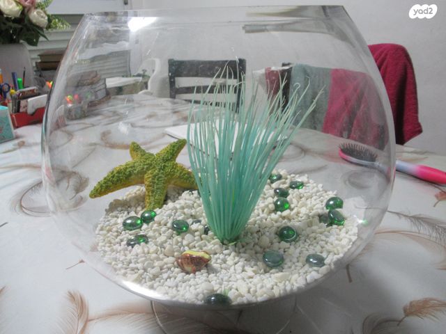 אקווריום צנצנת עגול ומיוחד בגודל 30*30 ס"מ, זכוכית עבה, כולל דקורציות בפנים. לא בשבת!