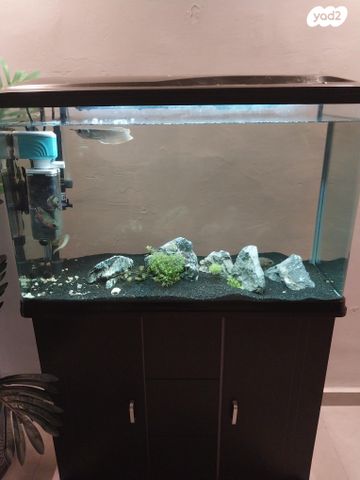 אקווריום עם ארון חדש נקנה לפני חודשיים נמכר מרצון לעבור ליותר גדול עקב סוגי הדגים. זכוכיות מעוגלות ויש לו גם פילטר מובנה שעובד פצצה אני הוספתי עוד אחד פנימי בגלל הדגים הטורפים. המידות אורך 80 ס"מ. גובה של האקווריום בלי הארון 52 עם הארון 1.20 רוחב 34 ס"מ. נא לא להתקשר בשבת תודה.