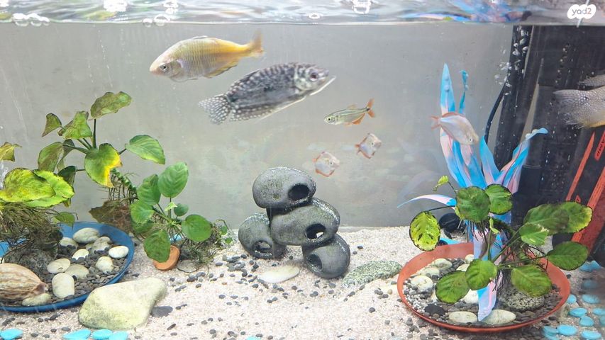 למכירה אקווריום מטופח 125 ליטר+ פילטר חיצוני+הארון עליו מונח האקווריום+תכולת הדגים+מדחום איכותי + מנורת UV