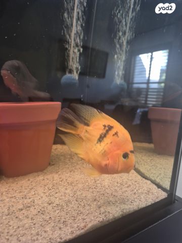תוכי טייגר צהוב-שחור עם צבעים חזקים. גודל בינוני 13 סמ +- תוספת צבע יפה מאוד בכל אקווריום ציקלידים.