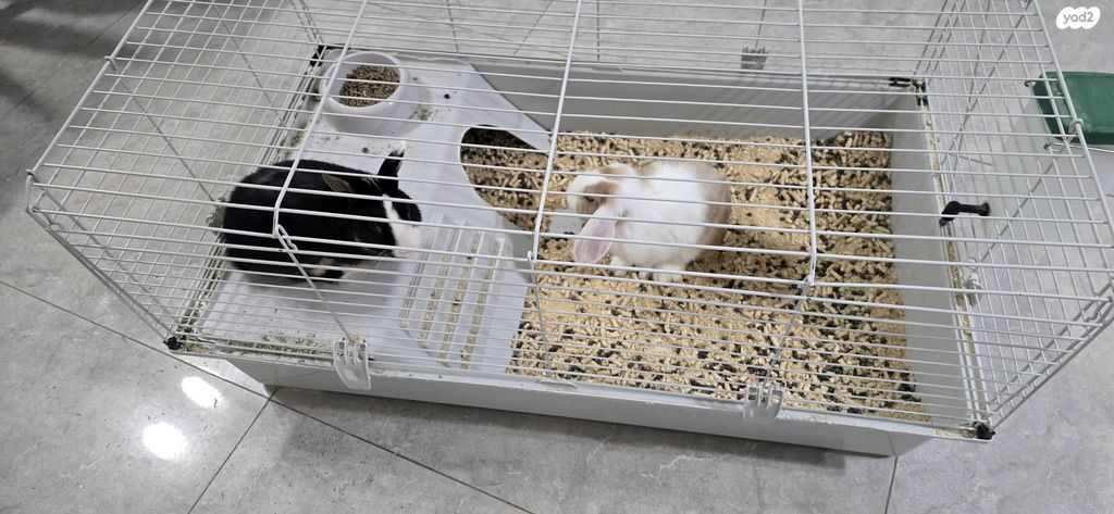 2 ארנבים חמודים זכרים ננסים בני 3 חודשיים כולל כלוב, נקנו לפני 3חודשיים