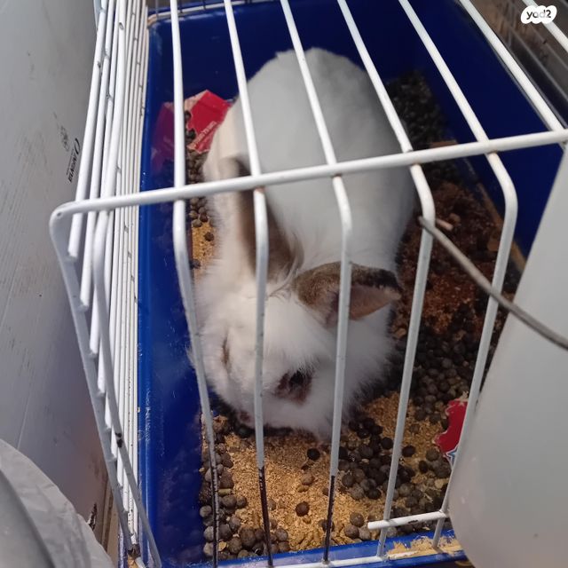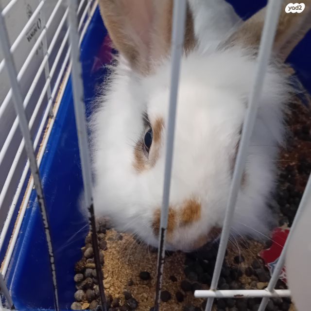 ארנב חמוד יפה. לבן עם כתמים חומים בהירים.