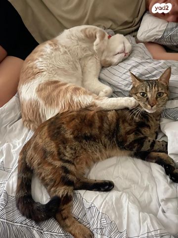 שולה בת שנה וחצי (המנומרת), הגיעה אלינו יום אחד לחצר ומאז היא בת משפחה. חתולה מאוד חברותית, נוחה, עדינה ורגועה. יפייפיה, קטנה בגודלה וככל הנראה גם תשאר ככה :) שולה ברוב היום נמצאת בבית וגם אוהבת לצאת לטייל מדיי פעם. מעוקרת, רגילה לאוכל יבש וצרכים בארגז חול. מחפש בית חם ואוהב שיקבל את שולה כבת משפחה. מצורפות גם תמונות של ג'ון, החבר הכי טוב שלה. עדיפות שימסרו יחד