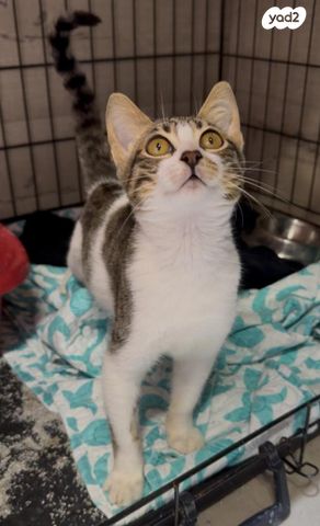גור בן 3.5 חודשים עם אופי מאוד נוח מחפש בית חם. חברותי, שקט, כל הזמן מחפש ליטופים ולהיות בידיים, לא מפחד מאנשים, מסתדר יפה עם עוד חתולים בדירה. טופל נגד פרעושים ותולעים, מורגל לארגז חול. מי שיאמץ אותו יזכה בהמון אהבה