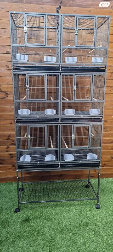 כלוב 3 קומות ו6 תאים למגדלים רציניים לריבוי או גמילת גוזלים. ענק! 95.5 רוחב, 45.5 עומק ו209 סמ גובה. כולל מחיצות שניתן להוציא וליצור 3 כלובים ענקיים במקום 6, שתי מאכילות נשלפות בכל כלוב, מקלות, פתחים לתא הטלה 2 בכל קומה, עגלה וצבע המרייט איכותי. כלוב ברמה הכי גבוהה שיש לתוכים גדולים וקטנים כאחד ומושלם גם למגוון בעח אחרים לבית או לתצוגה לחנות קיים בשחור ולבן
