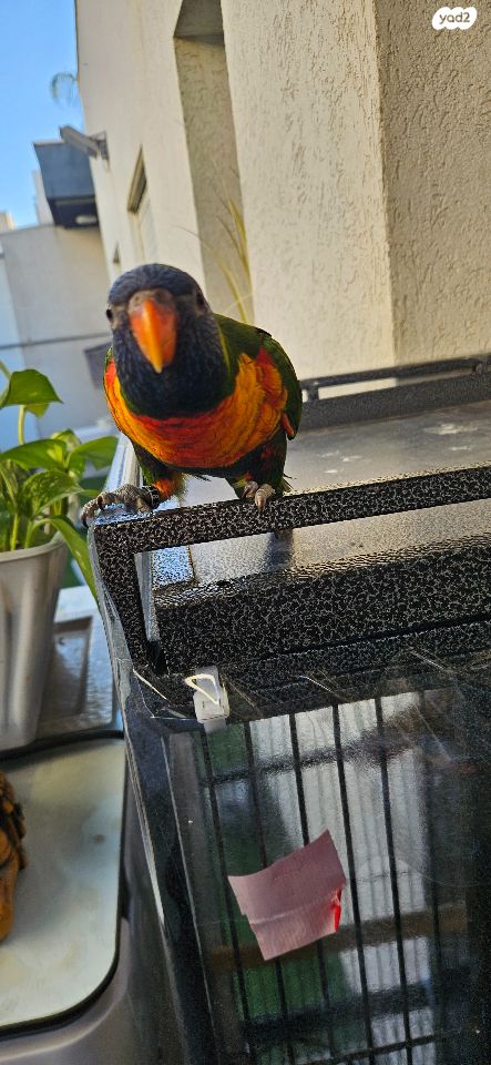 תוכי לורי קשת בן ארבעה חודשים, האכלת יד מאוד חברותי, נמכר לבד ב1500 ש"ח ישנה אופציה לקנות אותו ביחד עם כלוב האכלת יד ברמה גבוהה במחיר 1950 ש"ח
