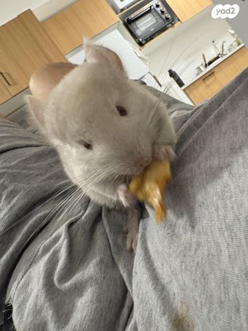 צינצילה זכר בצבע לבן. בן חודשיים וחצי נמכר בלי כלוב.