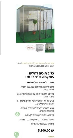 למכירה כלוב ענק לתוכים של חברת Imor! כלוב מרווח במיוחד בגודל 2×2×2 מטר מתאים לתוכים גדולים! אצלי היו בו זוג ארות והיה להם מלאאא מקום חזק, איכותי ועמיד מאוד כולל דלת כניסה לכלוב ופתח מסתובב לצלחות אוכל ומים. אידיאלי לזוג תוכים גדולים נמצא במושב גינתון, להגיע לקחת!
