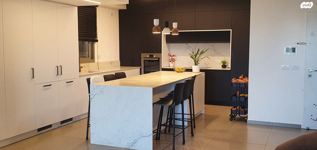 מטבח משודרג וגדול עם אי ענקי במטבח.