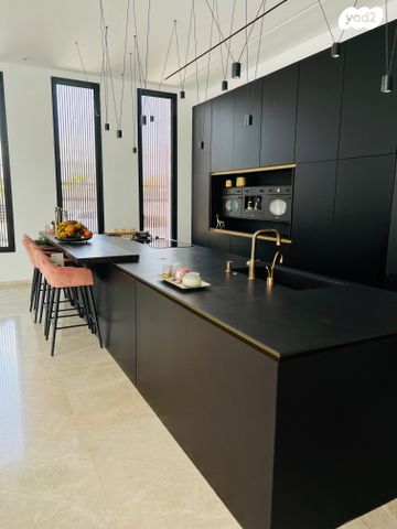 מטבח מודרני מדהים מאובזר עד הפרטים הקטנים עם אי גדול מאוד ופינת אוכל וסלון בסמוך , נוף לבריכה מכל כיוון!