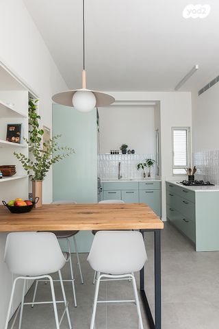 - מיטה זוגית, ספת מעצבים, שולחן סלון, מזנון, פינת אוכל וכסאות בר.