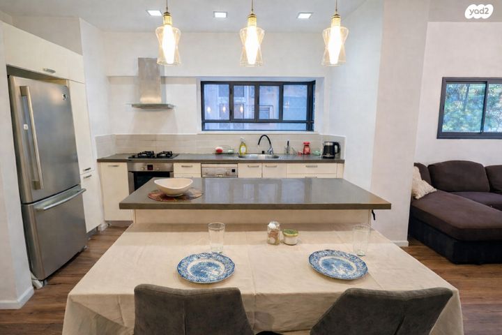 להשכרה מתיווך: דירת 2.5 חדרים משופצת ומוארת בגודל כ-64 מטר, ממוקמת בקומת קרקע כשהיא חצי קומה מעל מפלס הרחוב וללא גישה חיצונית מהרחוב.