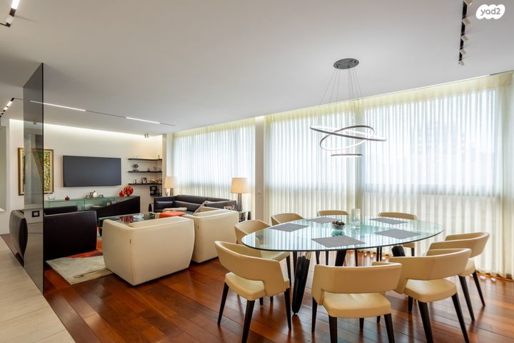 קומה 6: סלון רחב ידיים עם יציאה לנוף פתוח, מטבח מעוצב, ממ"ד ושירותי אורחים