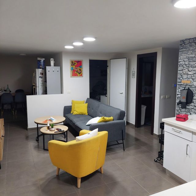 יחידת דיור כ50 מ' ,חדר ממד גדול,חצי חדר פתוח,סלון ומטבחון.יציאה לגינה פרטית כ15 מ' עם פרגולה. המחיר כולל ארנונה,שמירה,אינטרנט וTv. למעט חשמל מתאים ליחיד/זוג
