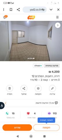 דירה, ד' / מערב מרכז העיר, רחובות