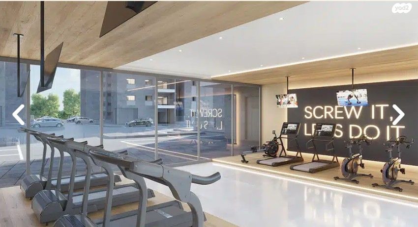 חדר כושר בבניין ולובי מפואר.