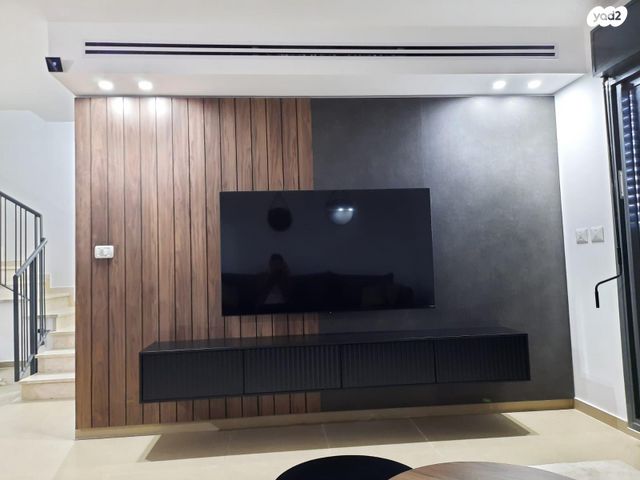 קיר חיפוי, מזנון צף, סלון, כורסאת יחיד מעוצבת, 2 שולחנות לסלון,מזגן מיני מרכזי, ומזגן עילי בכל חדר, עבודת נגרות מתחת למדרגות, גזיבו בגינה.