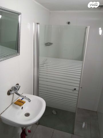 דירת חדר גדולה על הקרקע, עם שירותים ומקלחת גדולים משופצים.