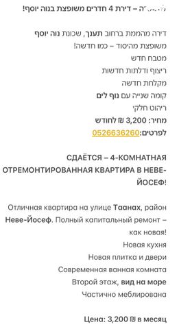 להשכרה דירת 4 חדרים מהממת עם נוף לים בשכונת נווה יוסף המבוקשת! דירה מרווחת ומשופצת כחדשה.