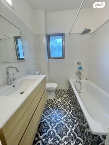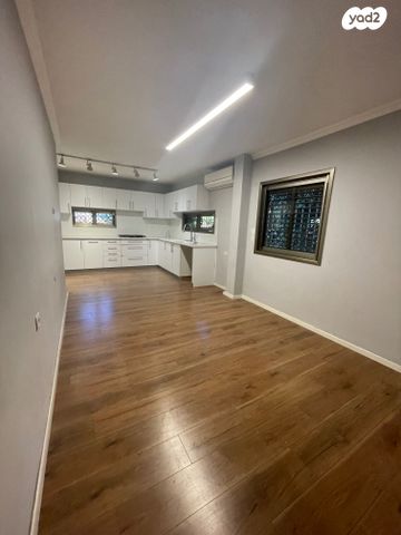 עם יציאה לגינה כ100 מטר מוקפת בירוק במפלס קרקע יש מטבח וסלון עם יציאה לגינה מטבח גדול עם המון נחסון . ארון קיר בחדר שינה הורים. ומידוף בחדר אחר. יש מקלט ויש חניה.