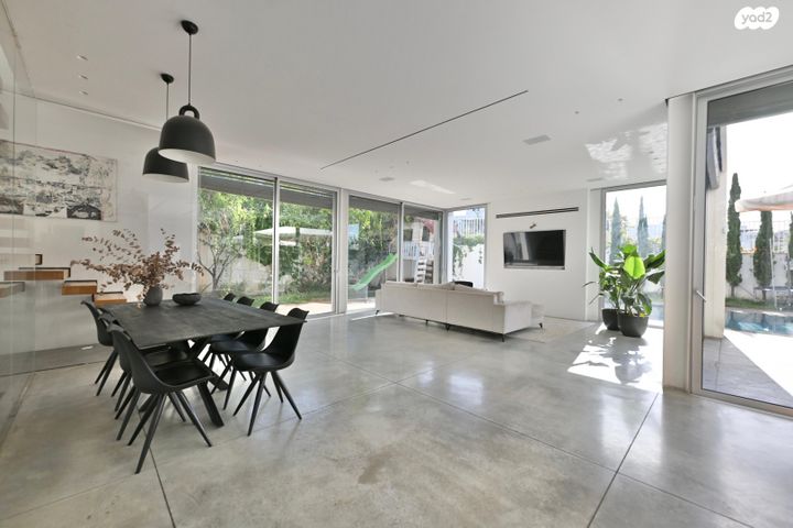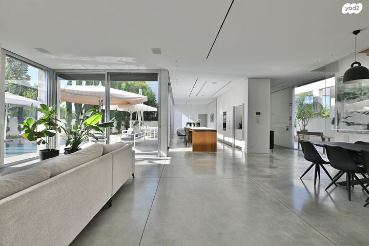 קומת כניסה 126 מטר של סלון מטבח ופינת אוכל בחלל פתוח עם 2 צדדים מלאים של וטרינות. השתקפות של כל הגינה והבריכה מהבית. *בנוסף אפשרות ליחידת הורים בקומה.